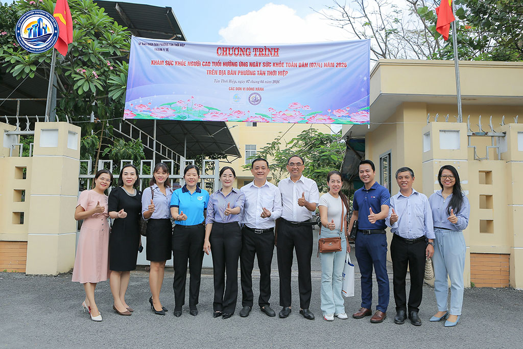 Sáng ngày 07/4/2026, trong không khí cả nước hưởng ứng Ngày Sức khỏe Toàn dân, tại một góc nhỏ của phường Tân Thới Hiệp, sự ấm áp không chỉ đến từ ánh nắng ban mai mà còn lan tỏa từ những cái nắm tay, những lời hỏi han chân thành và trên hết là sự hiện diện của một chương trình đầy ý nghĩa: khám sức khỏe miễn phí dành cho người cao tuổi và các hộ gia đình có hoàn cảnh khó khăn trên địa bàn.