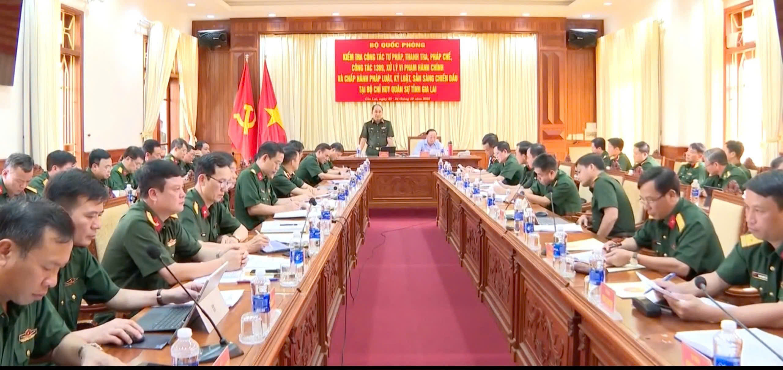 Hình ảnh toàn cảnh hội nghị kiểm tra các mặt công tác trọng điểm của Bộ Quốc phòng tại Bộ Chỉ huy Quân sự (CHQS) tỉnh Gia Lai.