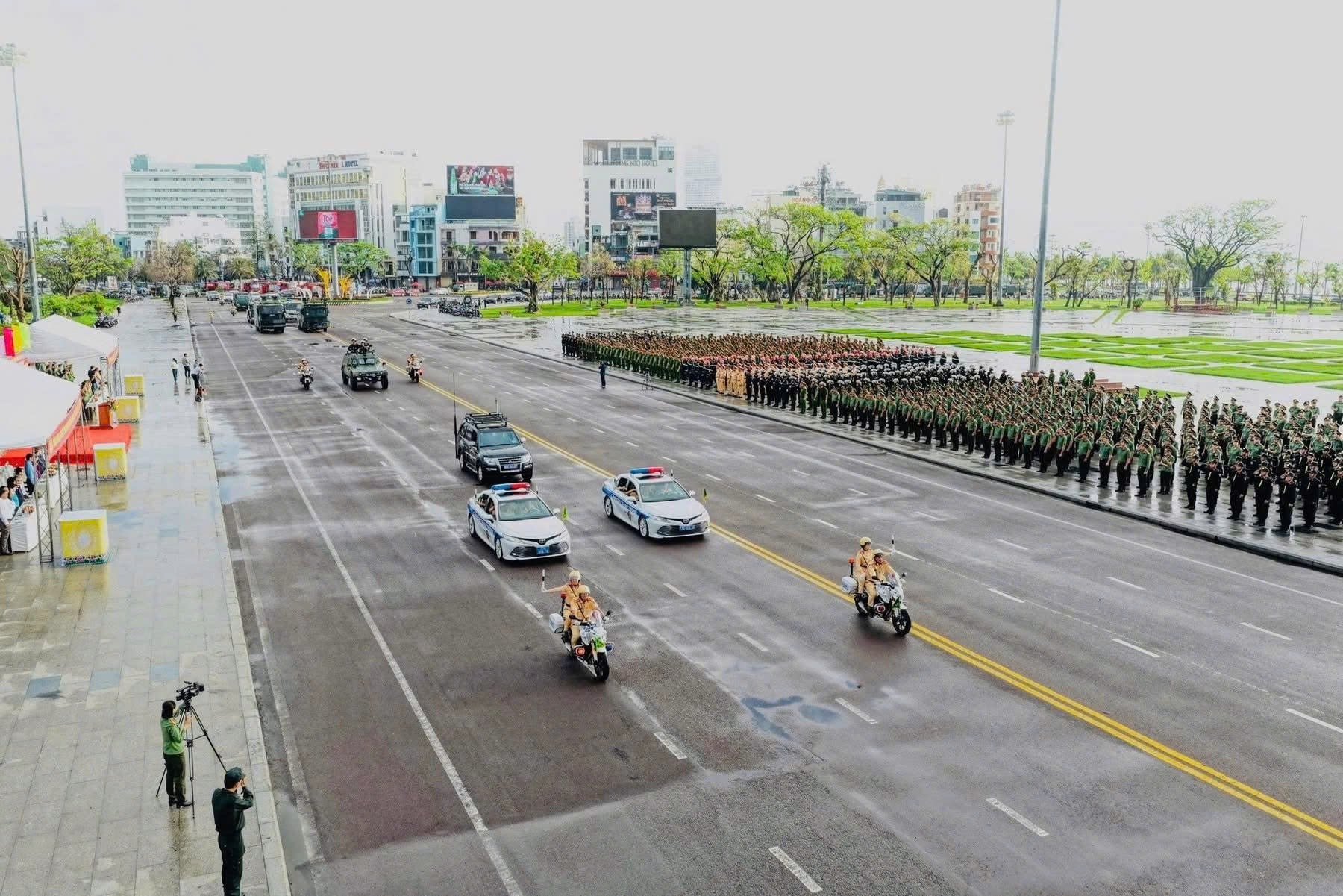 Ngay từ sáng sớm, không khí tại khu vực Quảng trường Nguyễn Tất Thành và các tuyến đường huyết mạch đã trở nên sôi động với màn diễu binh, biểu dương lực lượng của các đơn vị nghiệp vụ. Sự xuất hiện của những khối đội hình tinh nhuệ cùng trang thiết bị hiện đại đã thu hút sự chú ý đặc biệt của đông đảo quần chúng nhân dân.