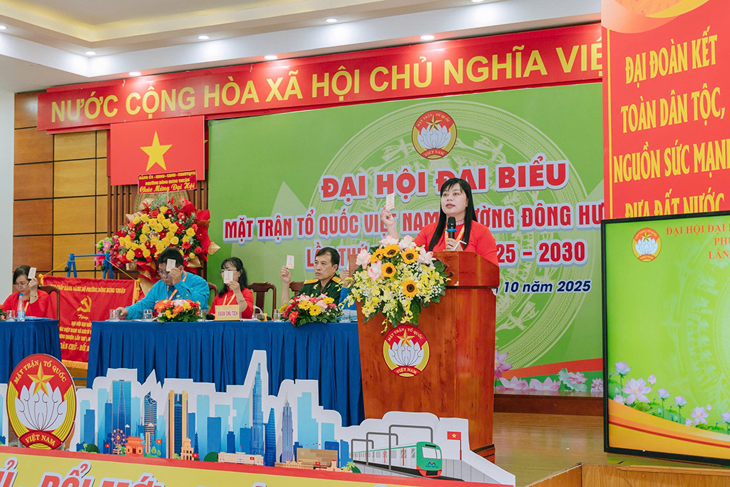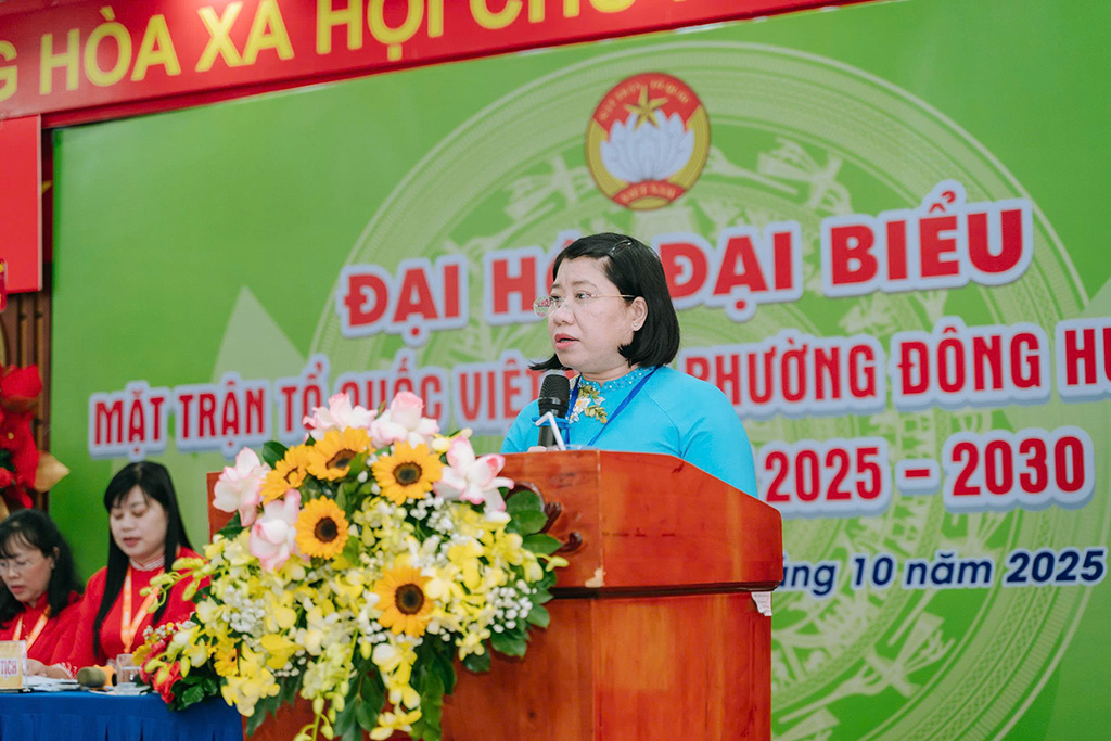 Phát biểu chỉ đạo tại Đại hội, đồng chí Trần Thị Huyền Thanh, Bí thư Đảng ủy phường Đông Hưng Thuận, kỳ vọng Ủy ban MTTQ Việt Nam phường sẽ tiếp tục kiện toàn tổ chức, đổi mới tư duy, nội dung và phương thức hoạt động. Trong đó trọng tâm là hướng về cơ sở, bám sát các nhiệm vụ phát triển kinh tế – xã hội của địa phương. Đồng thời nhấn mạnh trong bối cảnh chuyển đổi số đang diễn ra mạnh mẽ, MTTQ phường cần xây dựng “Mặt trận số” như một kênh tiếp nhận, lắng nghe và phản hồi ý kiến của người dân. Song song đó, cần bồi dưỡng kỹ năng số cho đội ngũ cán bộ Mặt trận, giúp mỗi cán bộ sử dụng thành thạo công cụ số trong công việc hằng ngày, góp phần nâng cao hiệu quả tuyên truyền, vận động và phục vụ nhân dân.