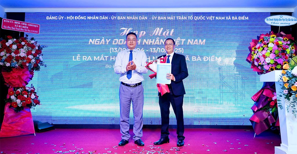 Chiều ngày 10/10, tại Trung tâm Hội nghị Royal Center (180 Song Hành, xã Bà Điểm, Thành phố Hồ Chí Minh), Đảng ủy – HĐND – UBND – Ủy ban MTTQ Việt Nam xã Bà Điểm đã long trọng tổ chức buổi Họp mặt kỷ niệm 21 năm Ngày Doanh nhân Việt Nam (13/10) và Lễ công bố ra mắt Hội Doanh nghiệp xã Bà Điểm.