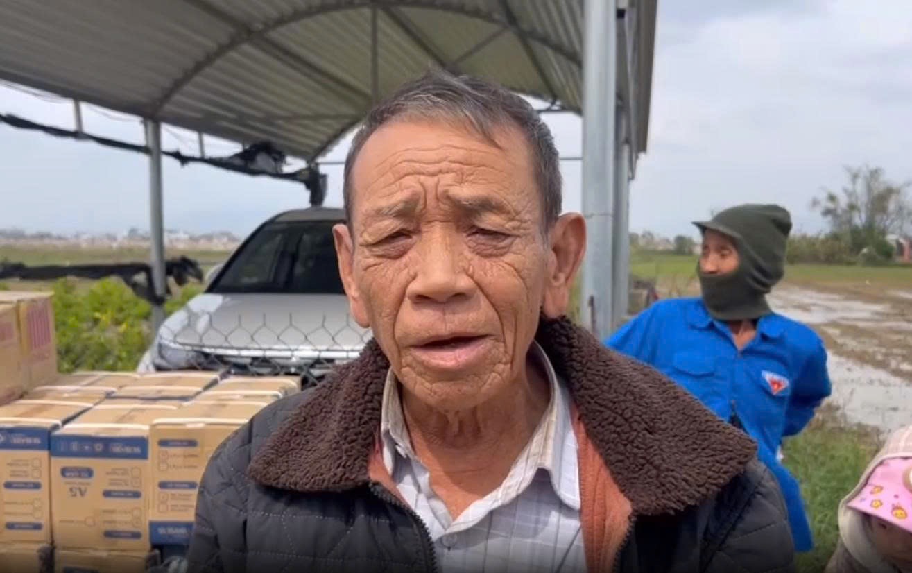 Ông Cao Văn Lợi – Trưởng thôn tại xã Tuy Phước Bắc xúc động chia sẻ về những khó khăn của bà con sau lũ và gửi lời cảm ơn chân thành đến đoàn công tác VKSND và Công ty TNHH Bình Minh Tải.