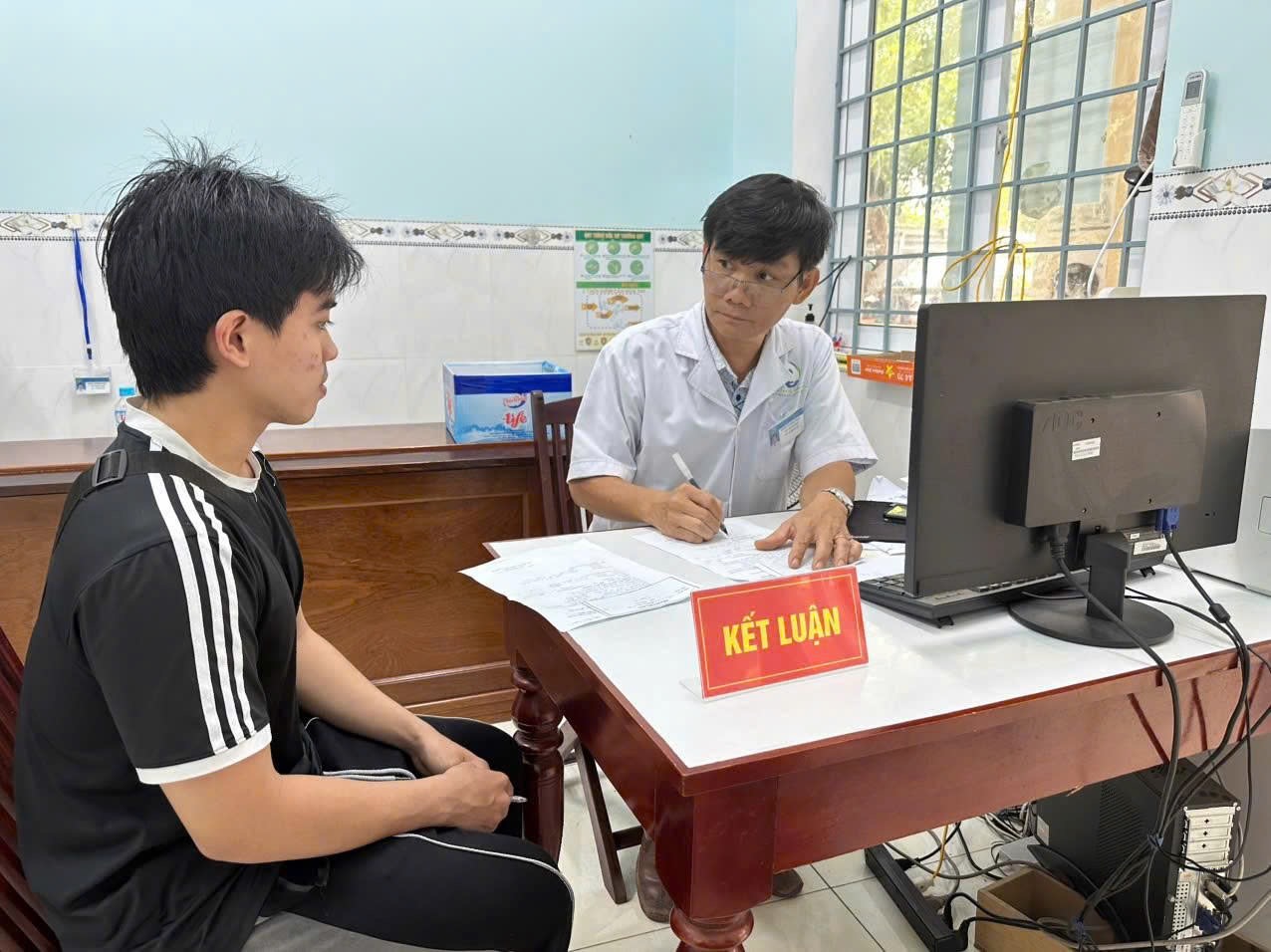 Ngay từ đầu buổi sáng, khu vực Trạm Y tế phường đã trở nên nhộn nhịp. Các thanh niên ăn mặc chỉnh tề, mang theo đầy đủ giấy tờ cần thiết, xếp hàng ngay ngắn chờ đến lượt kiểm tra sức khỏe.