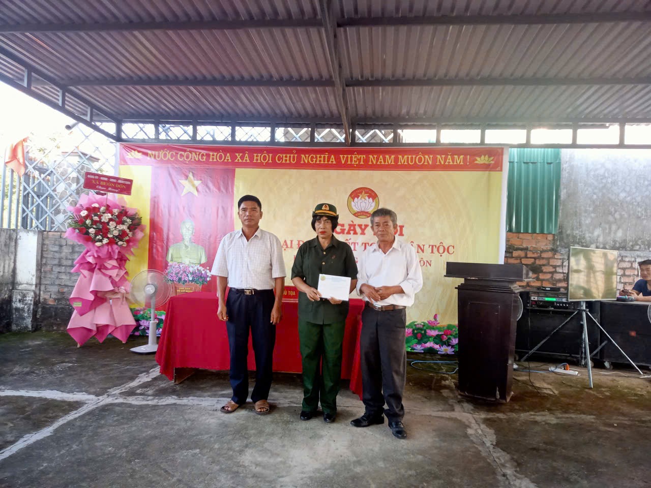 Trong dịp này, Ủy ban MTTQ Việt Nam xã tặng: 05 suất quà cho hộ khó khăn; 02 phần quà cho hộ gia đình tiêu biểu.