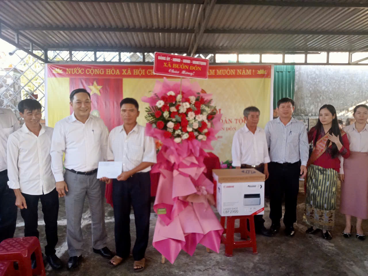 Đồng chí Bí thư Đảng ủy Nguyễn Công Dũng cũng trao tặng buôn và Ban Công tác Mặt trận 01 máy tính và 01 máy in phục vụ công tác xây dựng nông thôn mới, đô thị văn minh.