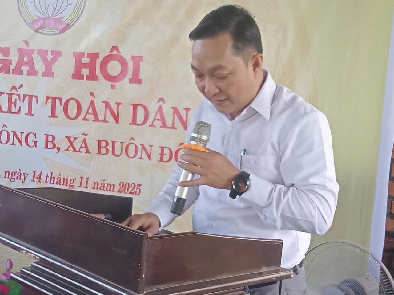 Nhân dịp ngày hội, Bí thư kêu gọi các tầng lớp nhân dân trong xã tiếp tục phát huy tinh thần sáng tạo, đoàn kết, thực hiện thắng lợi Nghị quyết Đại hội Đảng bộ xã Buôn Đôn lần thứ I, nhiệm kỳ 2025–2030; đẩy mạnh giám sát, phản biện xã hội; chăm lo quyền lợi chính đáng của nhân dân; và chung tay xây dựng xã hội văn minh, giàu đẹp hướng tới mục tiêu 2030 – dân giàu, nước mạnh, xã hội công bằng, văn minh; khát vọng 2045.