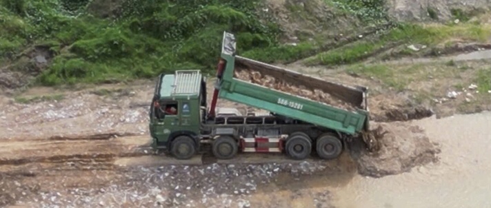 Một điểm tập kết khác được ghi nhận tại phường Phước Long, nghi là nơi chứa bùn thải từ công trình xây dựng. Theo quan sát, tại cuối đường Trương Văn Bang, giáp Nguyễn Khoa Đăng, nhiều xe tải lớn liên tục ra vào đổ đất bùn, dấu bánh xe còn in rõ trên nền đất. Do mưa nhiều ngày, lượng bùn nhão đã tràn ra các kênh rạch xung quanh.